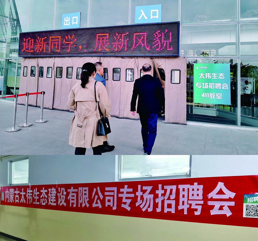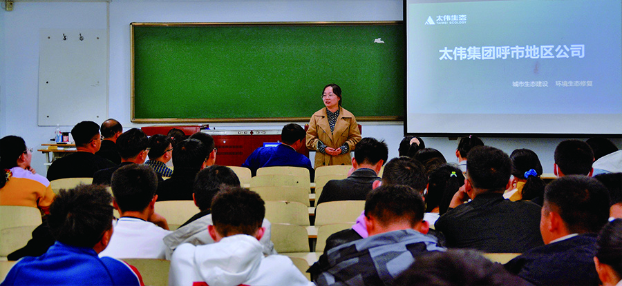 为促进内蒙古太伟生态人才聚集,推动校企深度融合发展。2020年10月24日,太伟生态走进内蒙古农业大学,在农大博学楼411教室举办“内蒙古太伟生态建设有限公司专场招聘会”。