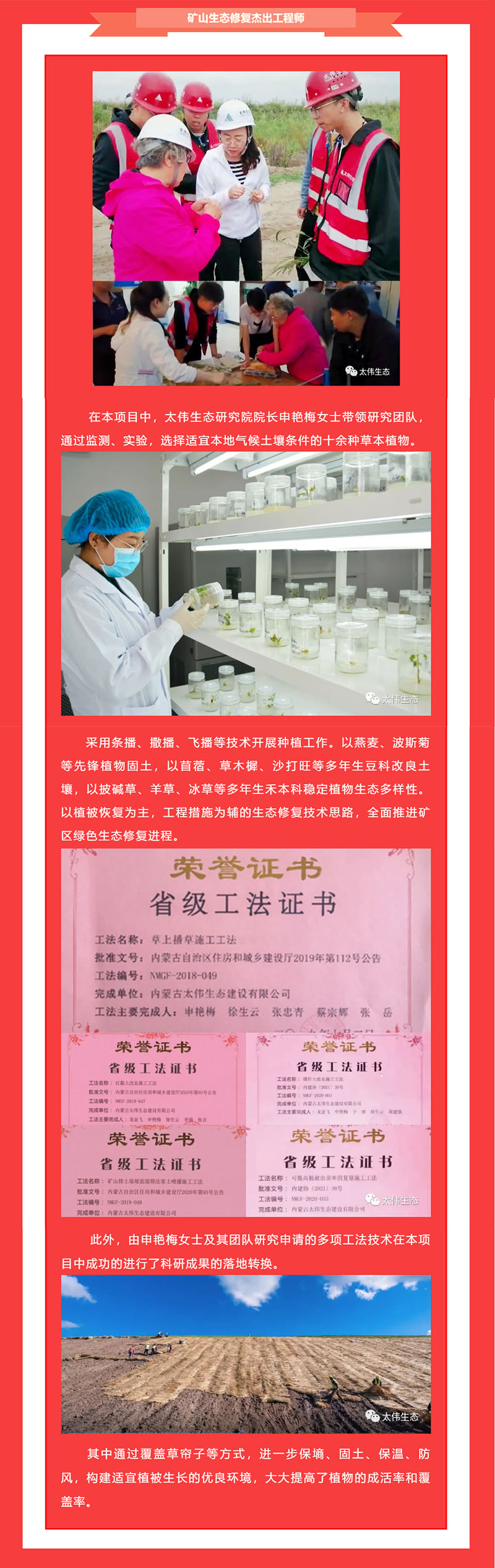 企业荣誉 |热烈祝贺太伟生态荣获全国矿山修复工程双项殊荣